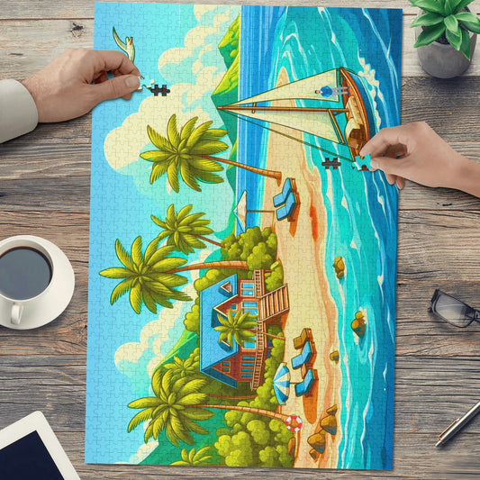Caribbean Beach House (1000 pieces) Wooden Jigsaw Puzzle (1000 Pcs)
